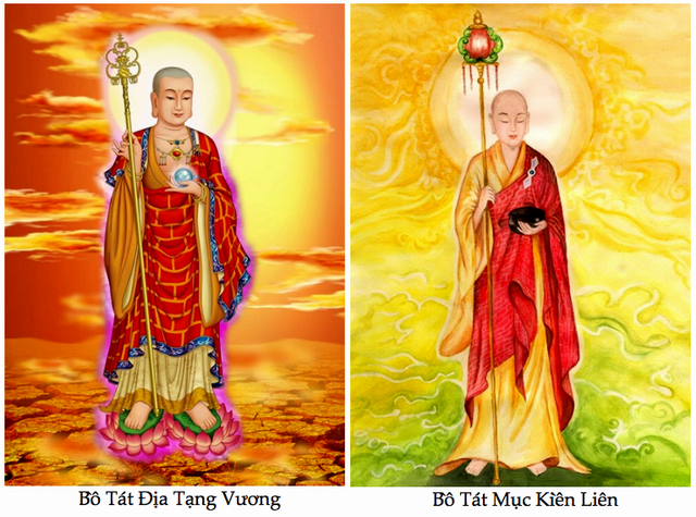 Tóm lại, Mục Kiền Liên là vị Tôn Giả thời Phật còn tại thế (Kinh Vu Lan và Kinh Báo Phụ Mẫu Ân); Địa Tạng Vương Bồ-tát do Đức Phật giới thiệu trong Kinh Địa Tạng; và Đường Tam Tạng được bước ra từ truyện Tây Du Ký của cụ Ngô Thừa Ân.