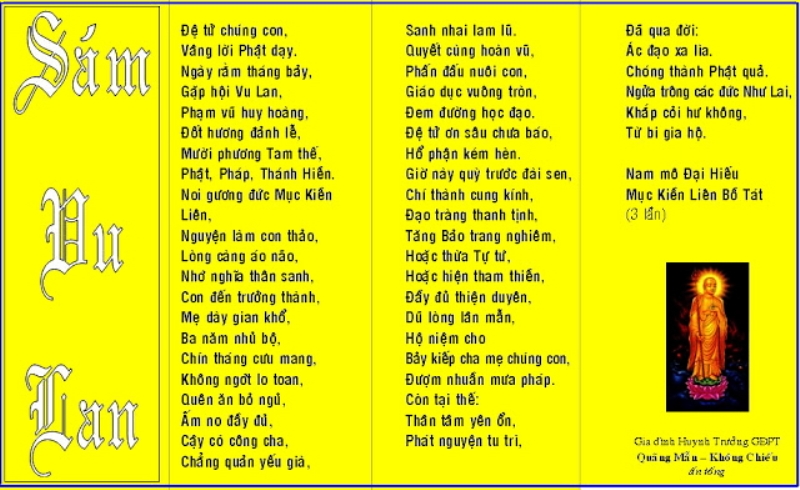 Sám Vu Lan Đã đăng 15/08/201105/09/2025 bởi QuangMai Bài tương tự: Sám Xuất Gia Sám Khánh Đản Sám Thành Đạo Kinh Vu Lan Bồn (Song ngữ Việt – Anh) Kinh Vu Lan và Kinh Báo Ân Cha Mẹ