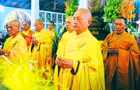 Trong thời phút nhân duyên thủ thắng giao cảm linh thiêng này, kính xin Chư Tôn Đức và liệt quý vị Phật Tử các giới đang có mặt trong Pháp Hội tưởng niệm này, xin tất cả chúng ta cùng nhau thắp lên ngọn đèn của giới đức, định lực và tuệ giác, tiếp nối gương xưa nhiếp phục ma quân, giữ gìn mối đạo, rạng rỡ Phật đường…